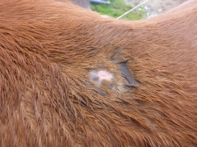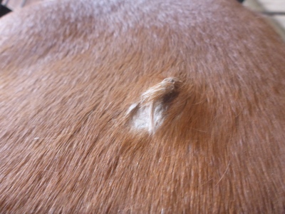März 2014 - weiße Stellen verursacht durch den Druck/Scheuern des Barefoot-Sattels
